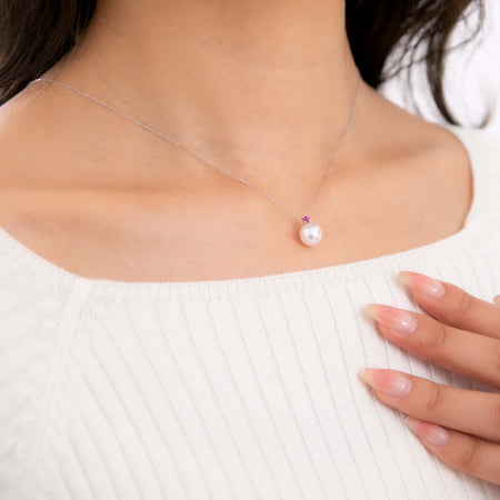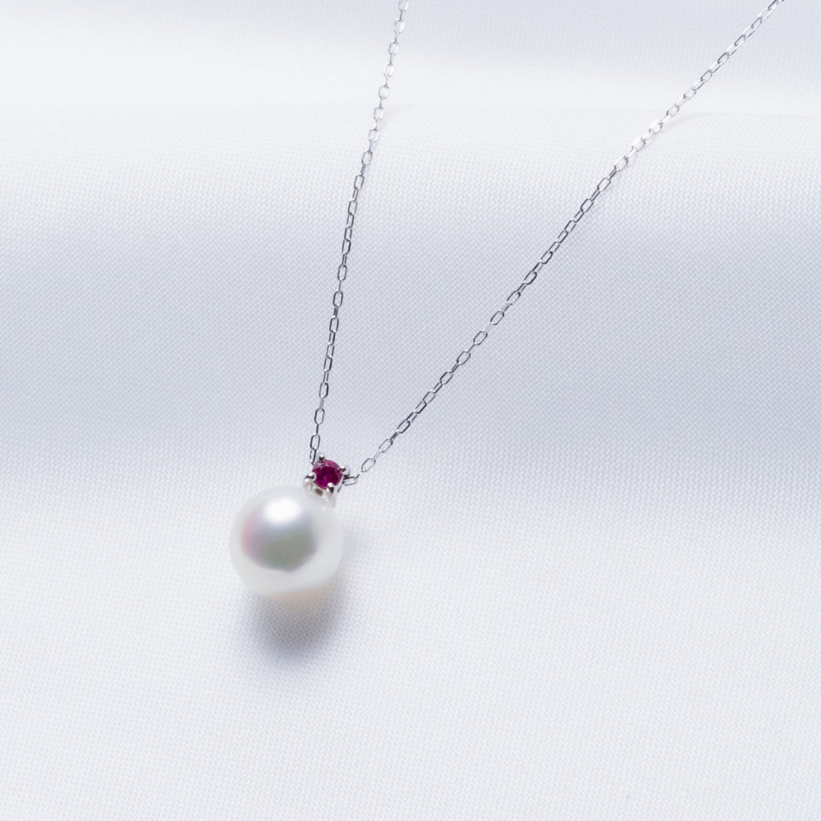ERIS VELINA Necklace・Pendant Birthstone Ruby K10WG Akoya Pearl Women JAPAN
