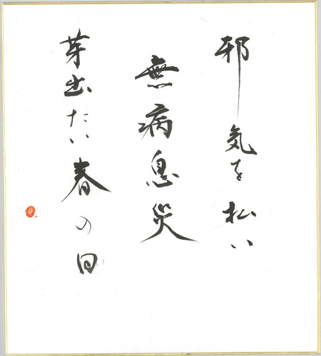 Handwritten Calligraphy AIAOI [MU BYO SOKU SAI] Kanji Sumi Oriental art JAPAN