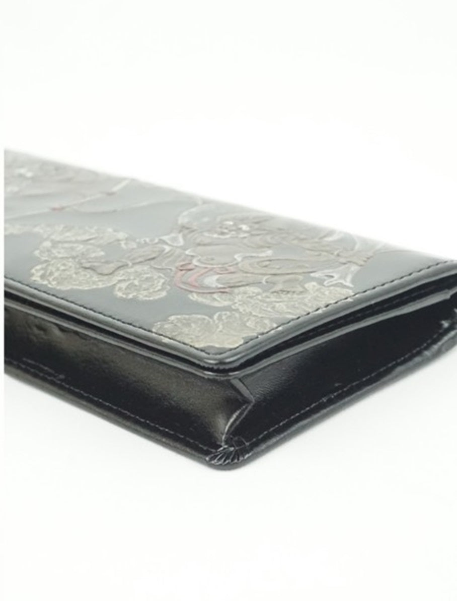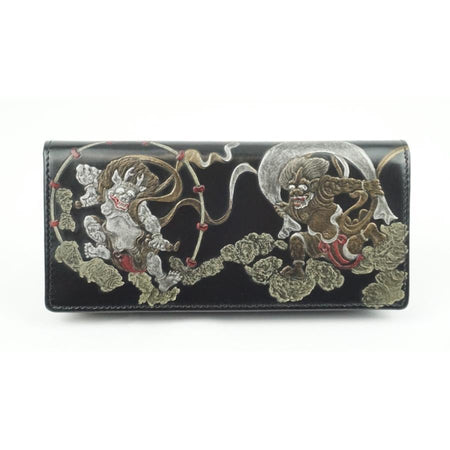 This long wallet features the popular images of the wind god and thunder god, embossed (a technique in which a heated mold is applied to make the design stand out), and is not only stylish but also has ample storage capacity.