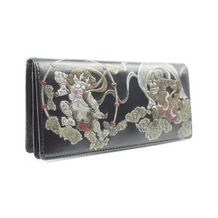 WIND GOD THUNDER GOD Long wallet Embossing Cowhide leather Black made in japan