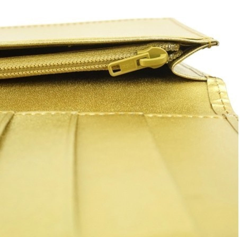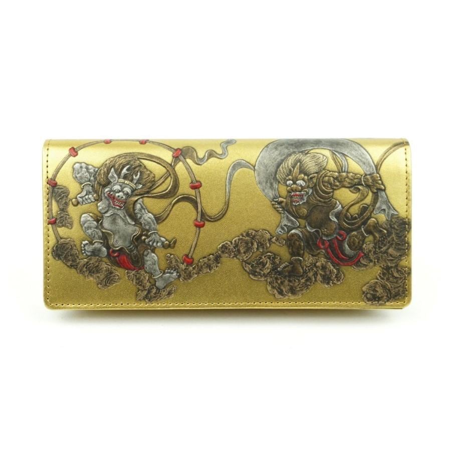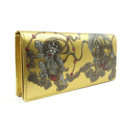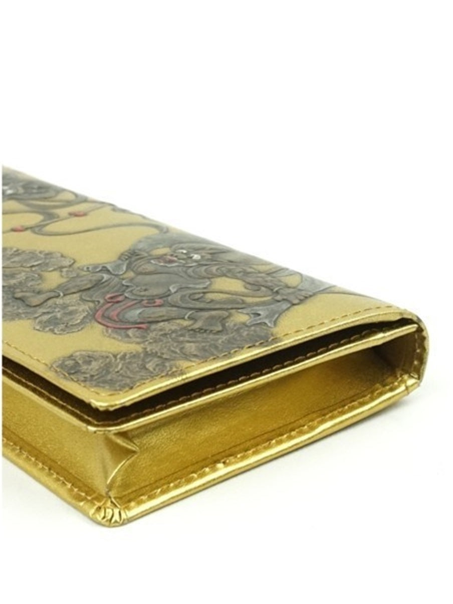 WIND GOD THUNDER GOD Long wallet Embossing Cowhide leather Gold made in japan