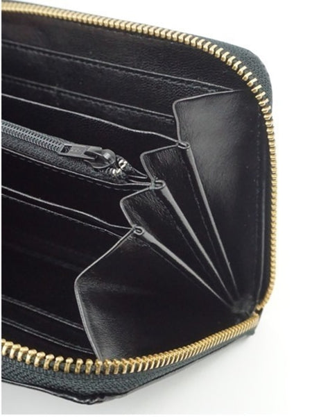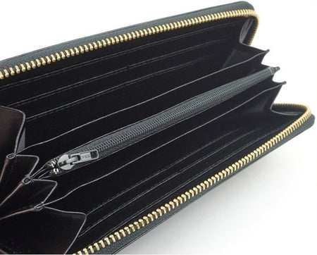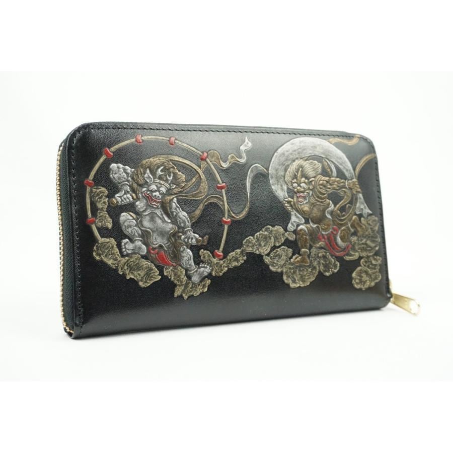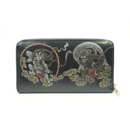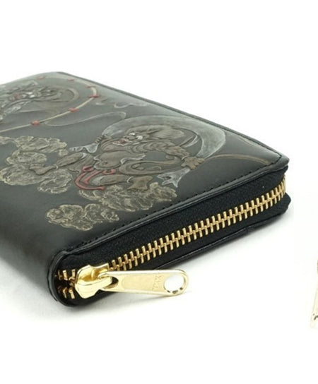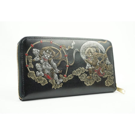 WIND GOD THUNDER GOD Longwallet Zipper Emboss Leather Black made in JAPAN