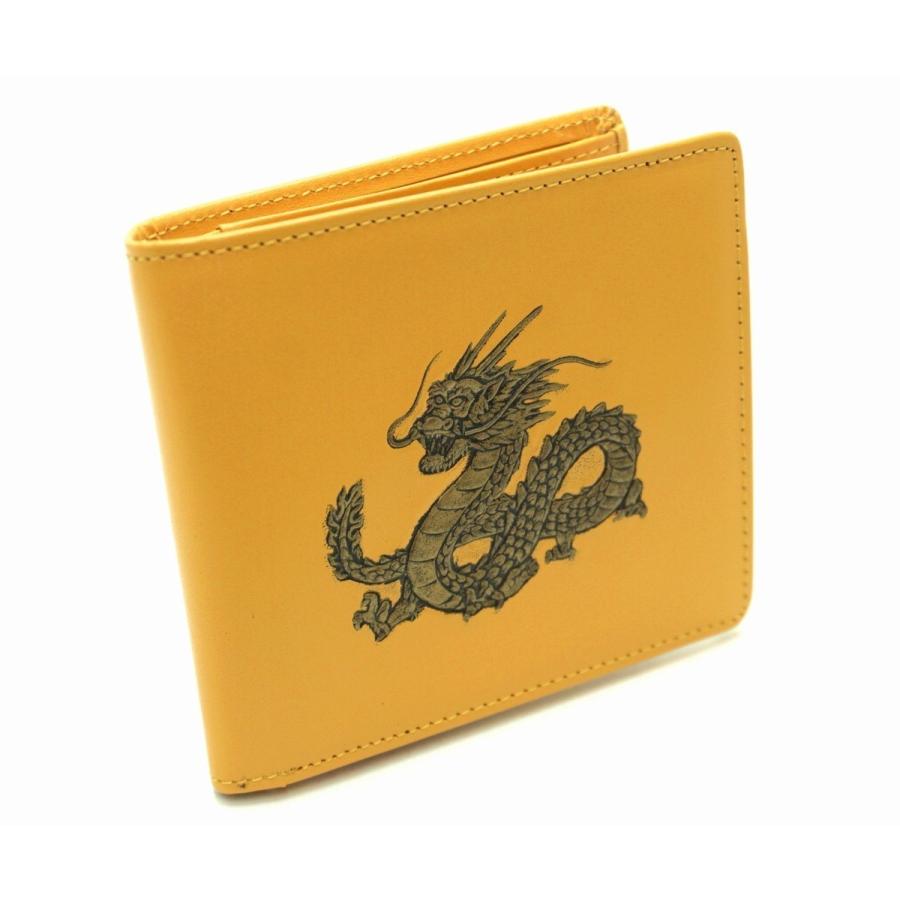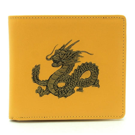 FORTUNE DRAGON Bifold wallet Emboss leather Yellow Master Craftsmanship