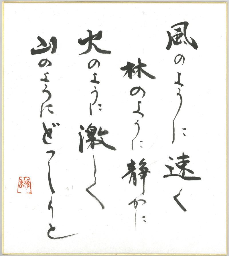 It is written here: "As fast as the wind, as quiet as a forest, as fierce as fire, as solid as a mountain."