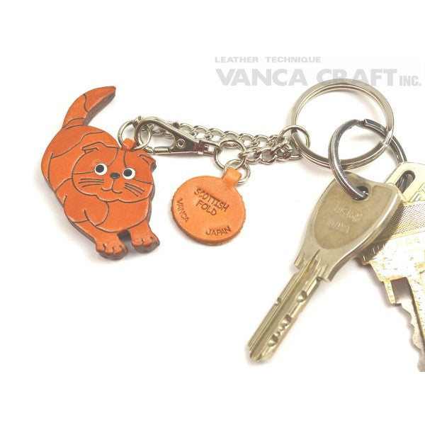 Genuine 3D Leather Scottish Fold Leather Ring Charm are hand made by skillful leather craftsmen of VANCA CRAFT INC.Handmade with eco-friendly materials including non-toxic stains.This is a leading leather-crafts manufacturer brand in Japan.Using the finest genuine leather with 110 years of craftmanship.