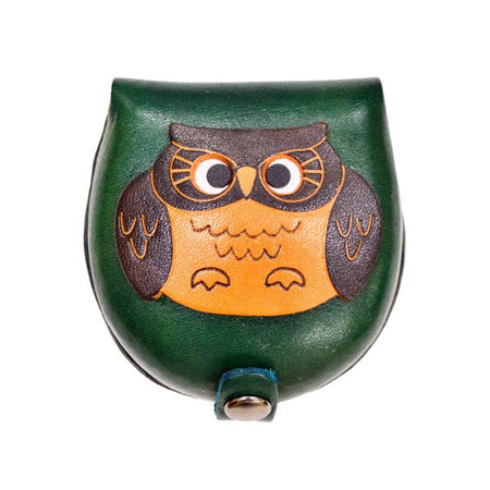 Owl-green Handmade Genuine Leather Animal Color Coin case/Purse #26088-3