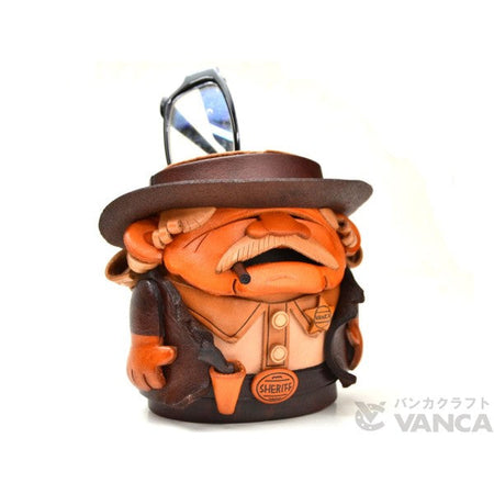 Genuine 3D Leather Sheriff Handmade Leather Eyeglasses Holder/Stand are hand made by skillful leather craftsmen of VANCA CRAFT INC.Handmade with eco-friendly materials including non-toxic stains.This is a leading leather-crafts manufacturer brand in Japan.Using the finest genuine leather with 110 years of craftmanship.