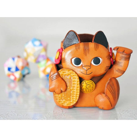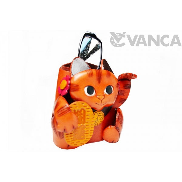 Genuine 3D Leather Lucky Cat Handmade Genuine Leather Eyeglasses Holder/Stand are hand made by skillful leather craftsmen of VANCA CRAFT INC.Handmade with eco-friendly materials including non-toxic stains.This is a leading leather-crafts manufacturer brand in Japan.Using the finest genuine leather with 110 years of craftmanship.