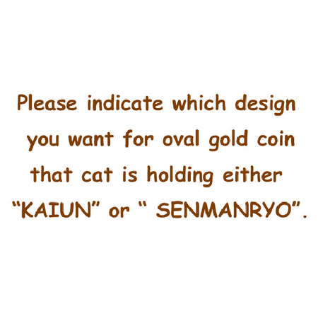 Please indicate which design you want for oval gold coin that cat is holding either 驕ッ・カ陝抵スウAIUN驕ッ・カ郢晢スサor 驕ッ・カ郢晢スサSENMANRYO驕ッ・カ郢晢スサ