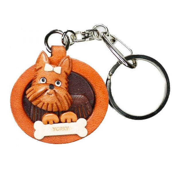 Genuine 3D Leather Yorkshire Terrier Leather Dog plate Keychain are hand made by skillful leather craftsmen of VANCA CRAFT INC.Handmade with eco-friendly materials including non-toxic stains.This is a leading leather-crafts manufacturer brand in Japan.Using the finest genuine leather with 110 years of craftmanship.