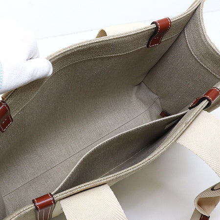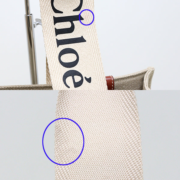 ◆Chloe Linen Woody Tote Bag CHC22AS383I2690U Tote Bag Beige White.