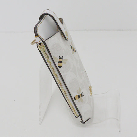 COACH Shoulder Bag Smartphone case Signature Honeybee PVC white Women