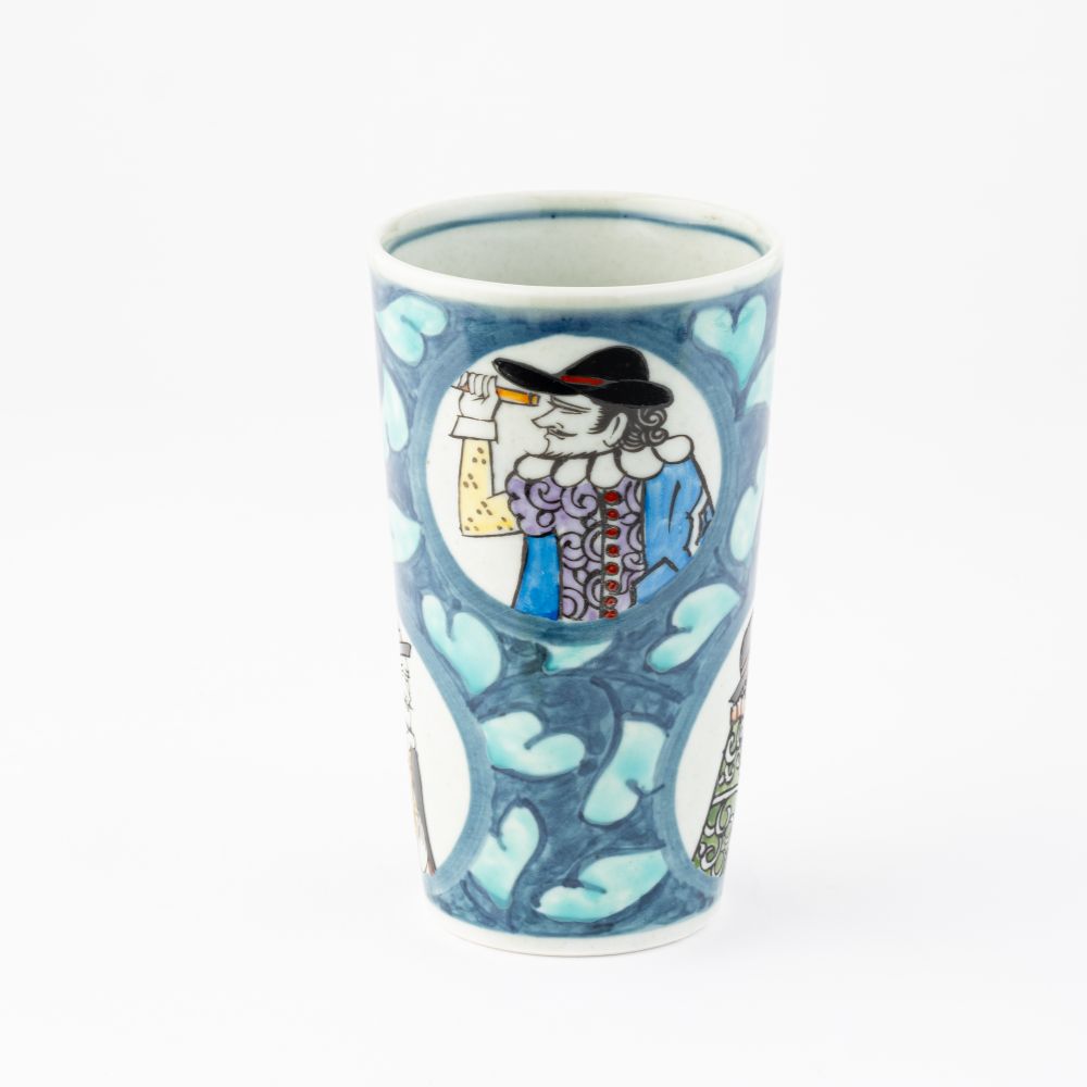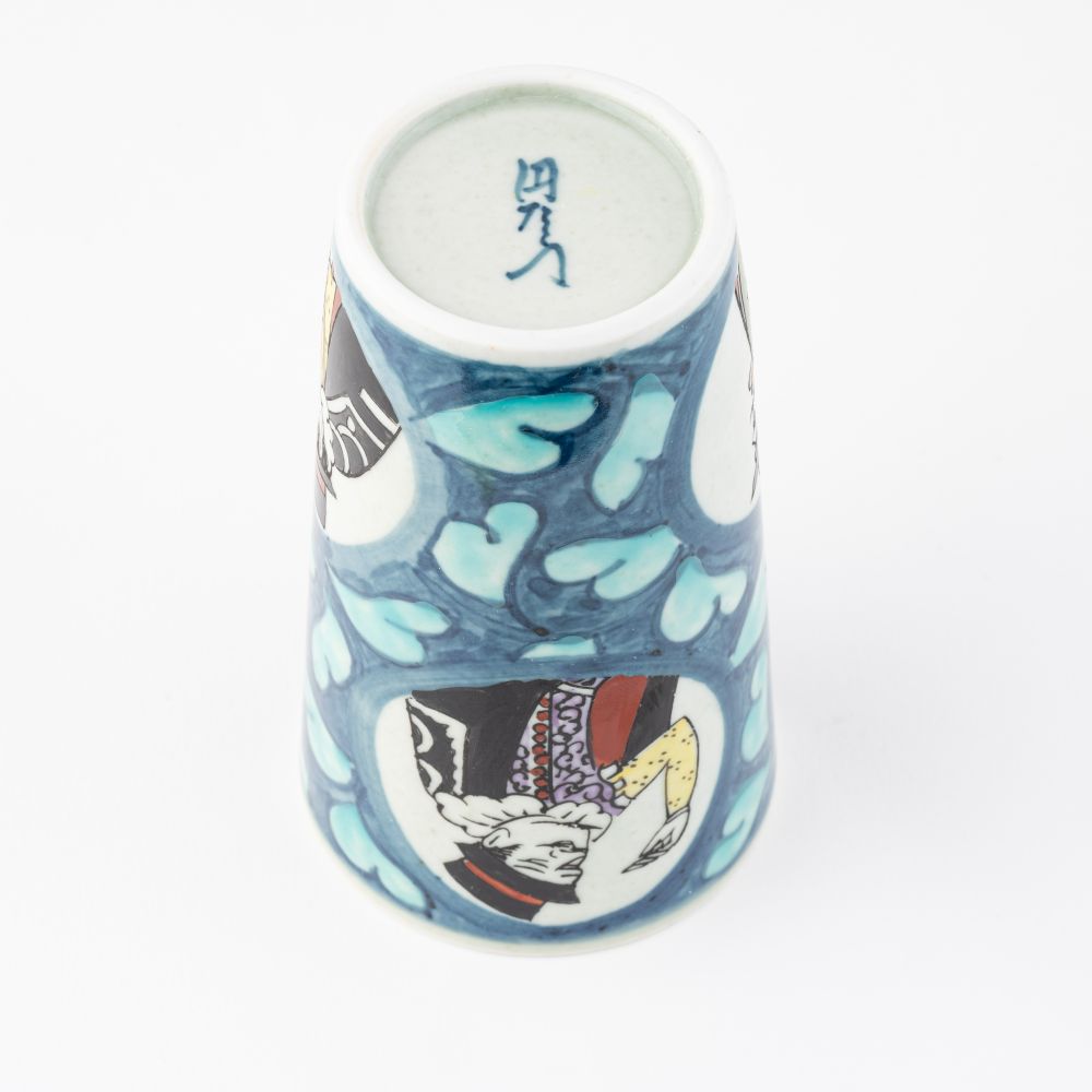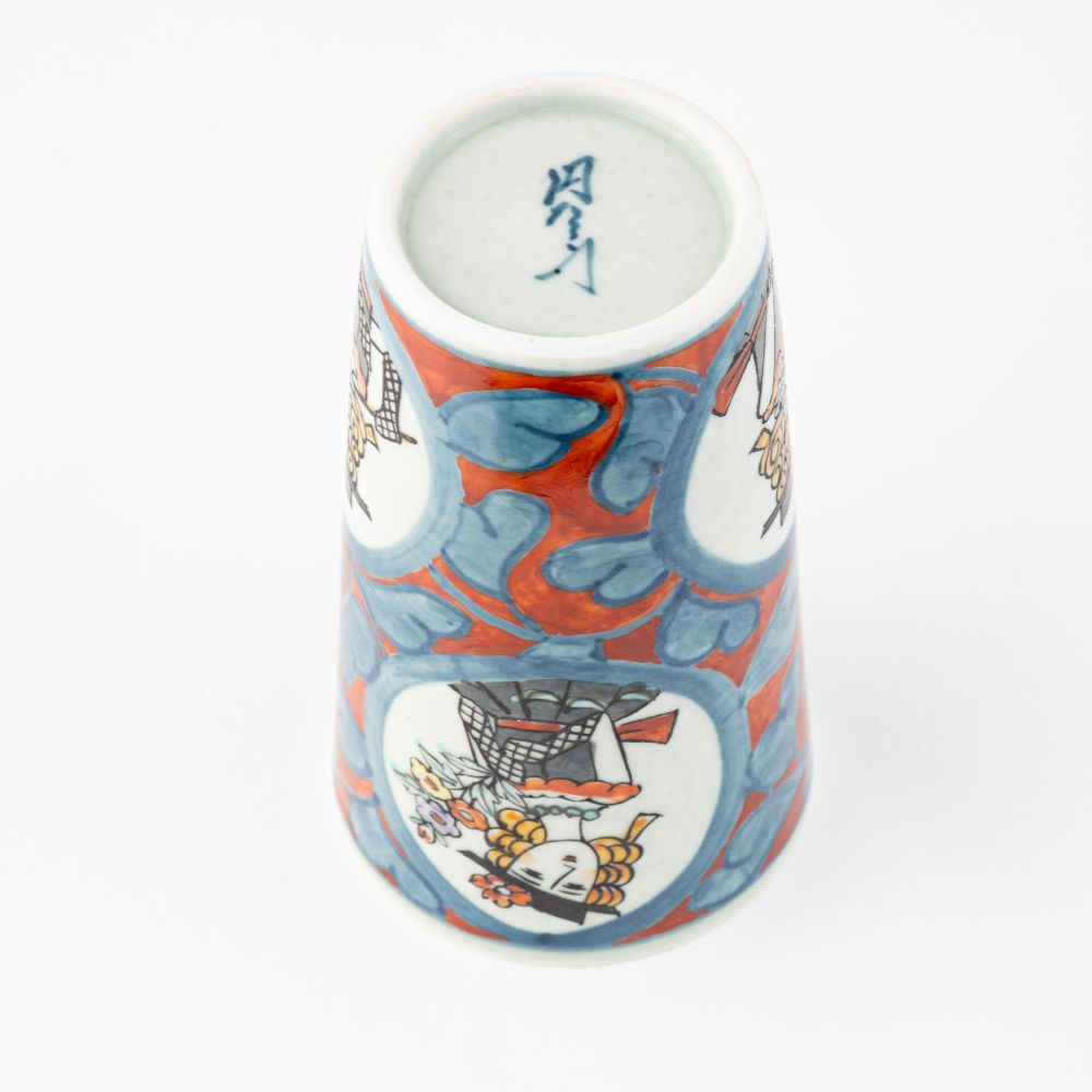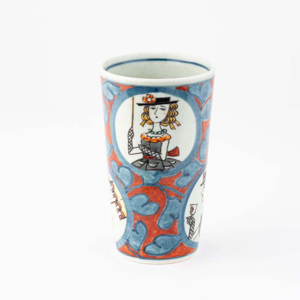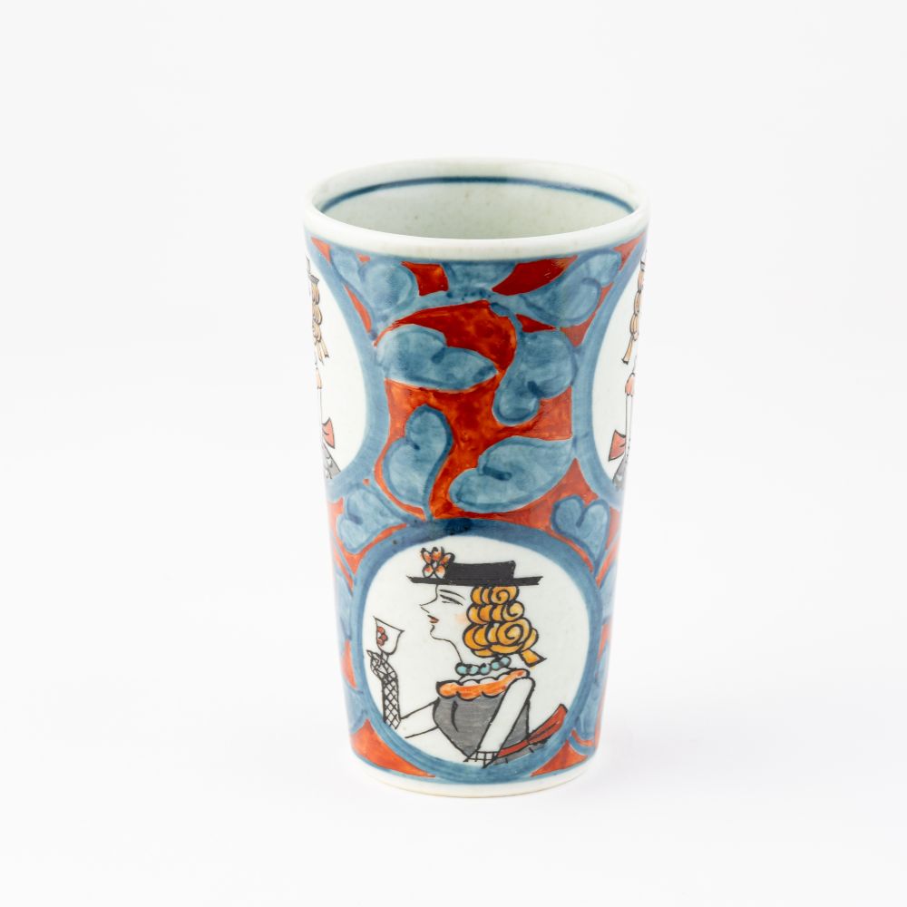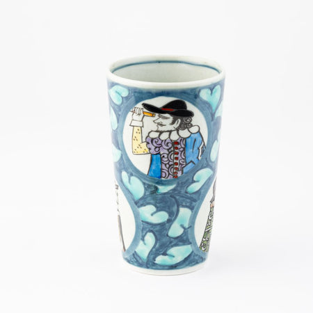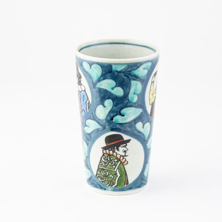 - A playful and unique set of cups crafted in Arita, Saga, Japan, featuring whimsical retro-style portraits with vibrant hand-painted detail.