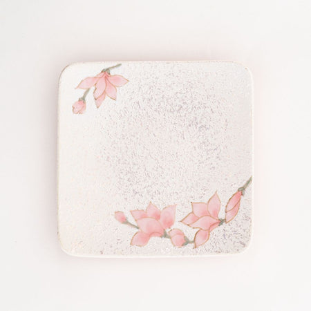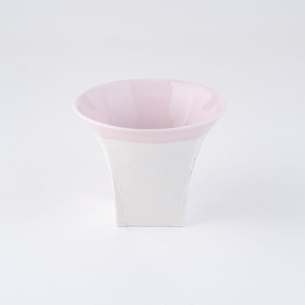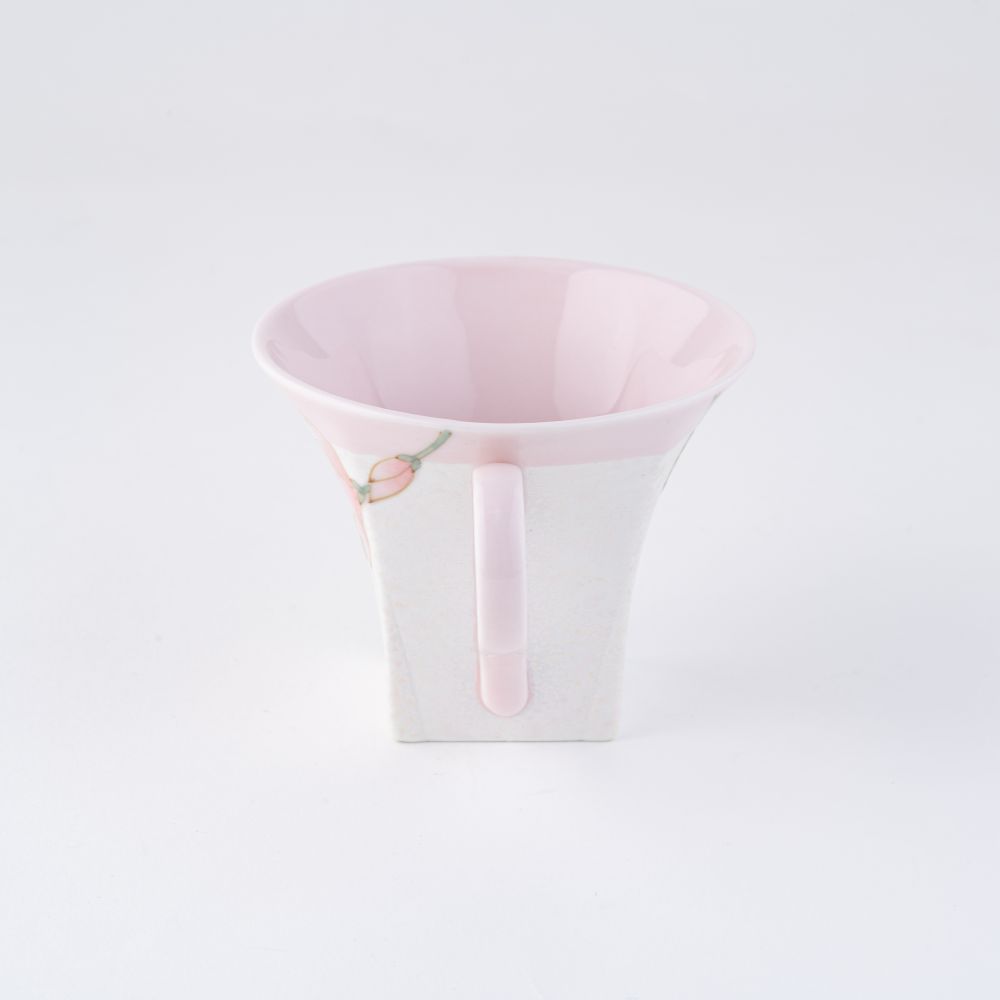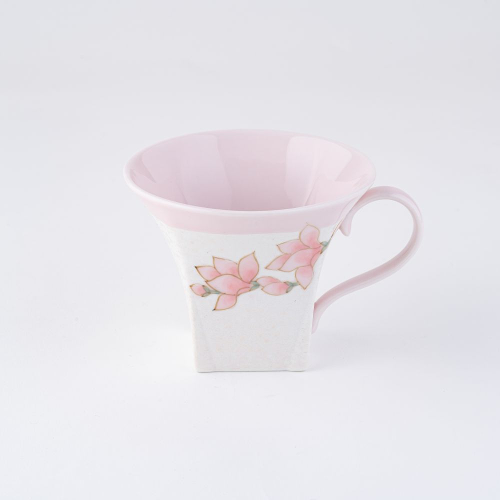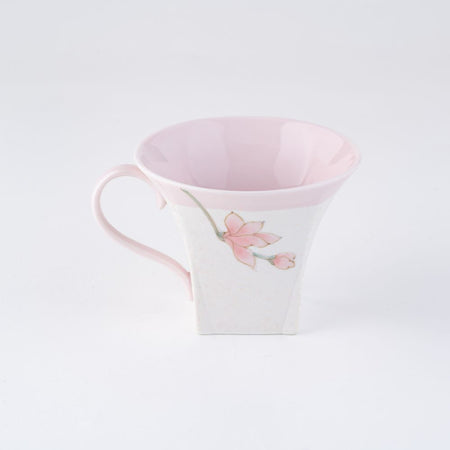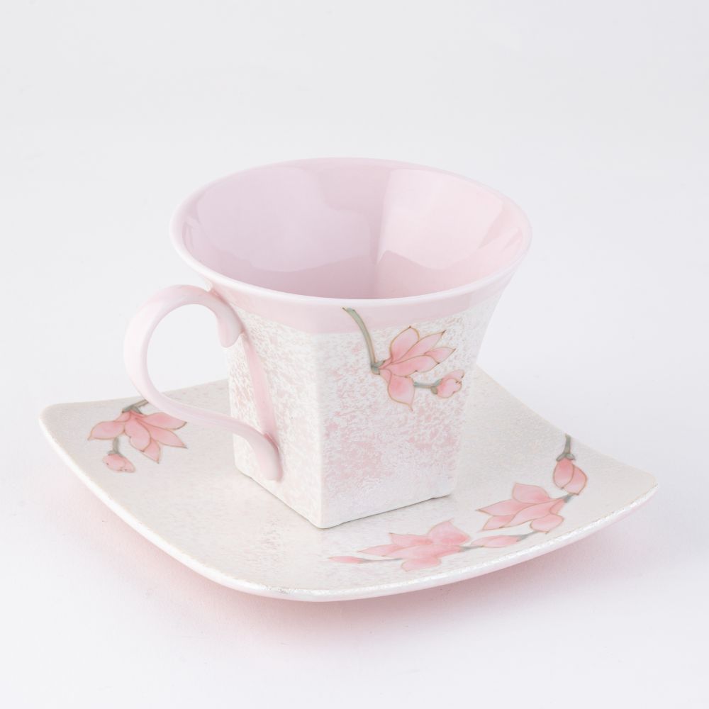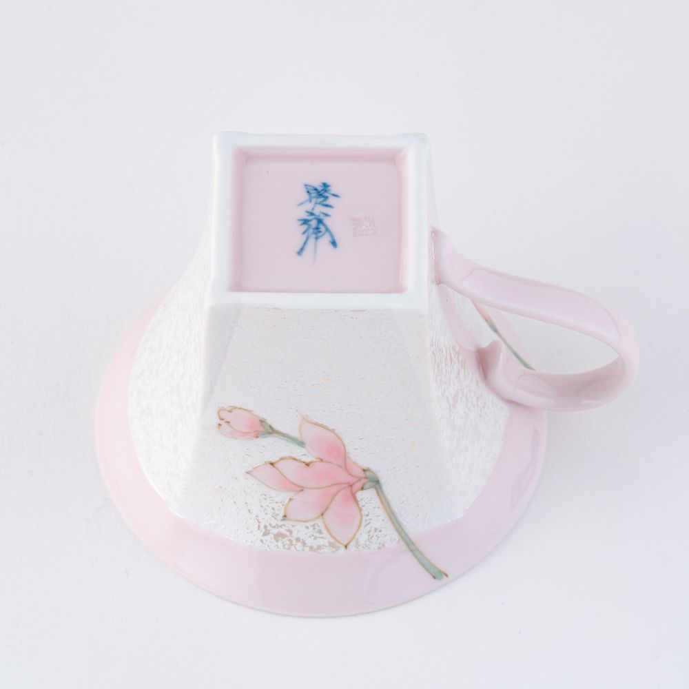 Japanese Arita Ceramic Cup and Saucer Set, White and Pink Flower Patterns