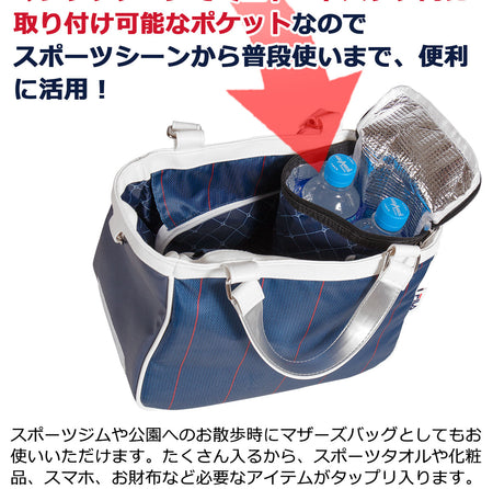 Comes with a dedicated "cold pocket" that allows you to carry around cold drinks. Cooling function perfect for midsummer rounds! !Two 500ml drinks are included. This pocket can be removed for everyday use, so you can secure storage space for small items and use it as a large-capacity bag. It's a pocket that can be attached to the mini Tote Bag with Velcro, so it's convenient for sports and everyday use!