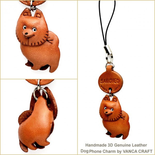 Genuine 3D Leather Samoyed Leather Cellularphone Charm are hand made by skillful leather craftsmen of VANCA CRAFT INC.Handmade with eco-friendly materials including non-toxic stains.This is a leading leather-crafts manufacturer brand in Japan.Using the finest genuine leather with 110 years of craftmanship.