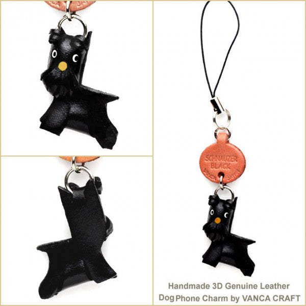 Genuine 3D Leather Schnauzer Black Leather Cellularphone Charm are hand made by skillful leather craftsmen of VANCA CRAFT INC.Handmade with eco-friendly materials including non-toxic stains.This is a leading leather-crafts manufacturer brand in Japan.Using the finest genuine leather with 110 years of craftmanship.