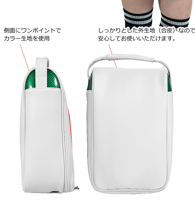 The lining is also carefully finished. Rugged design! The sides are made with a thickness of 10mm, which is about twice the normal thickness, so it is very safe. In addition, the shoe bag stands on its own, making it convenient to carry.