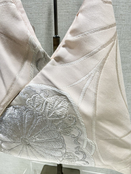 The Mukai-chou pattern, which consists of two butterflies facing each other, has been widely used since the Heian period (794-1185) for the “juni-hitoe” (12-layered robe) and other garments. Butterflies are also used as a lucky pattern to express conjugal bliss, as they are seen as a pair when they are in the egg-laying season. A lucky pattern is a pattern (pattern) that represents prosperity and longevity, and is considered to be good luck.