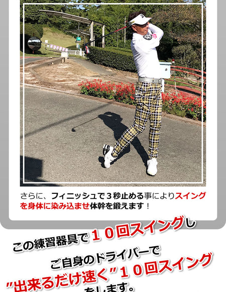 Swing 10 times with this exercise device and swing 10 times "as fast as you can" with your own driver. Aim for 3 to 5 sets a day!