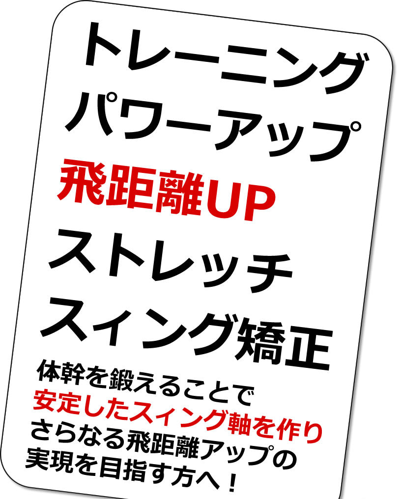 Training, power up, flight distance up, stretching, swing correction! For those who aim to create a stable swing axis by strengthening the trunk and further increase the flight distance!