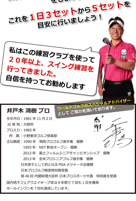 "It's not muscle strength, it's the power of the swing!" "Power Docky Swing," a swing practice club designed by U.S. pro senior champion Koki Idoki to increase flight distance.