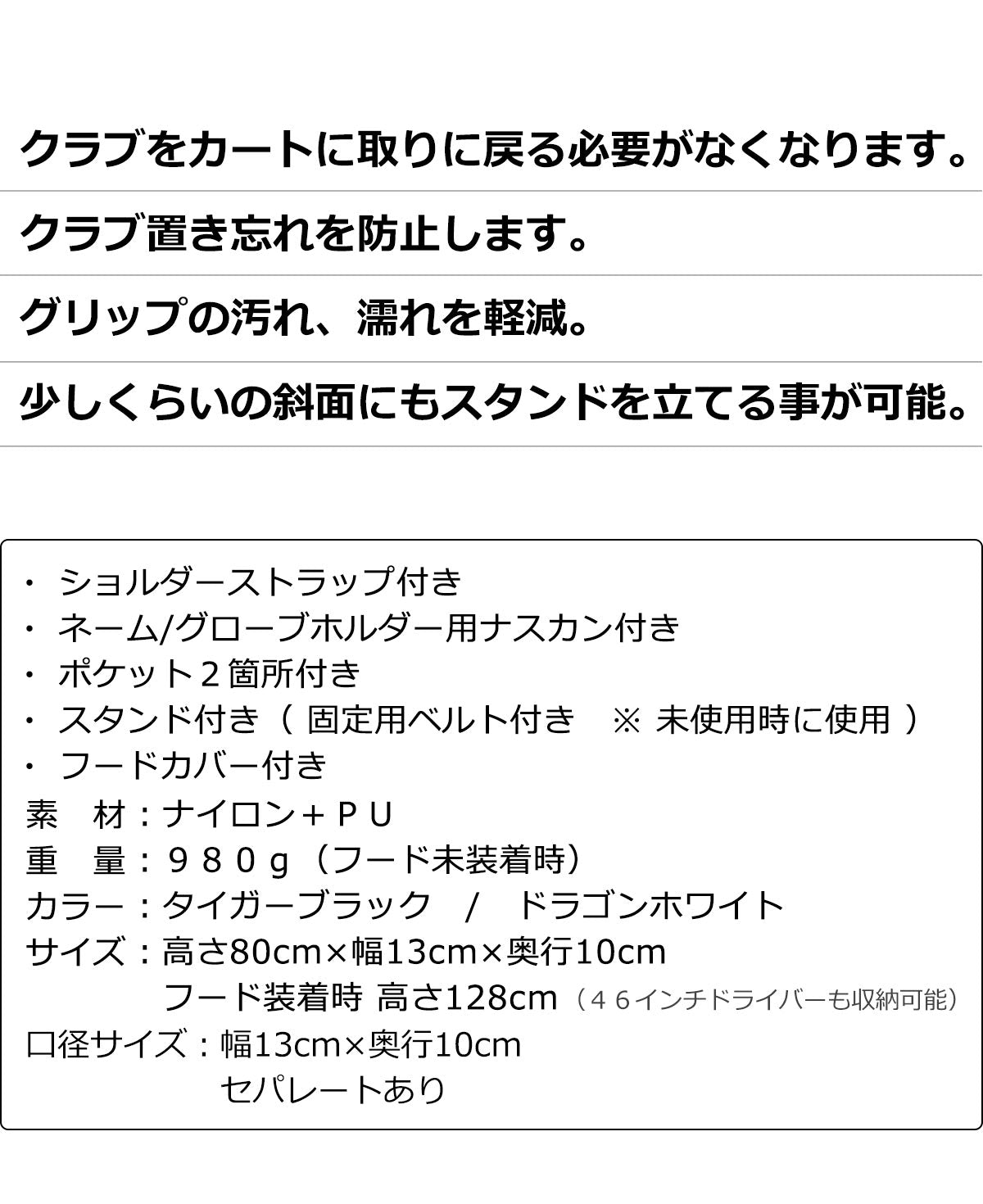 Shoulderwith strap, name/glove holder hook, 2 pockets, stand (with fixing belt *used when not in use), hood cover