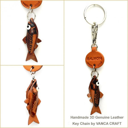 Genuine 3D Leather Salmon Japanese Leather Keychains Fish are hand made by skillful leather craftsmen of VANCA CRAFT INC.Handmade with eco-friendly materials including non-toxic stains.This is a leading leather-crafts manufacturer brand in Japan.Using the finest genuine leather with 110 years of craftmanship.