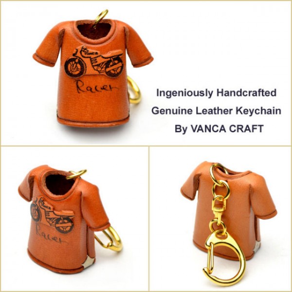 Genuine 3D Leather Racer Bike T-shirt Leather Keychain are hand made by skillful leather craftsmen of VANCA CRAFT INC.Handmade with eco-friendly materials including non-toxic stains.This is a leading leather-crafts manufacturer brand in Japan.Using the finest genuine leather with 110 years of craftmanship.