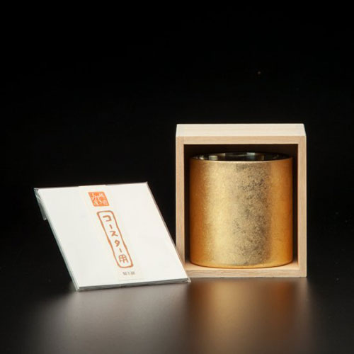 The lacquered cups are made with "Kanazawa gold leaf," a traditional craft passed down from Kanazawa City, Ishikawa Prefecture. Craftsmen use a technique called "kirimawashi," in which the gold leaf is hand-pasted, so no two cups have the same pattern. The cups are finished with Yamanaka-nuri's traditional wiped lacquer, preserving the texture of the gold leaf as much as possible.