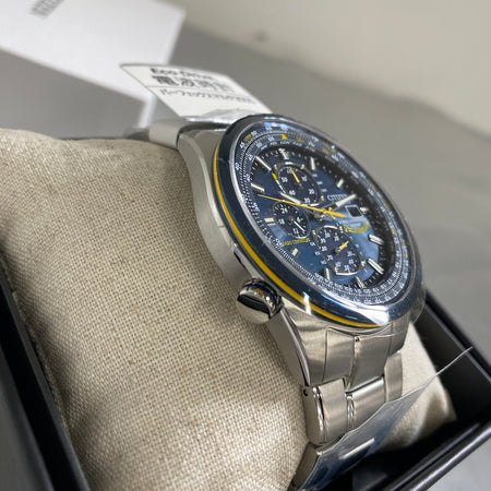 ・20 bar water resistant ・Average monthly difference ± 15 seconds (when not received) ・Drive period: About 10 months when fully charged (when power save is activated) ・Chronograph function (1/20 second, 60 minutes meter) ・24-hour display ・Perpetual Carrender ・Japan, China, Europe and Europe ・World time function (26 cities) ・Power save function ・Receiving station automatic selection function ・Scheduled reception function ・Forced reception function ・Shock detection function ・Needle automatic correction function ・Battery charge display function ・Charge warning function ・Overcharge prevention function ・Daylight saving time function ・Power save function ・Magnetic resistance type ・Luminous (needle, index) ・aviation slide rule ・Case back with Blue Angels emblem