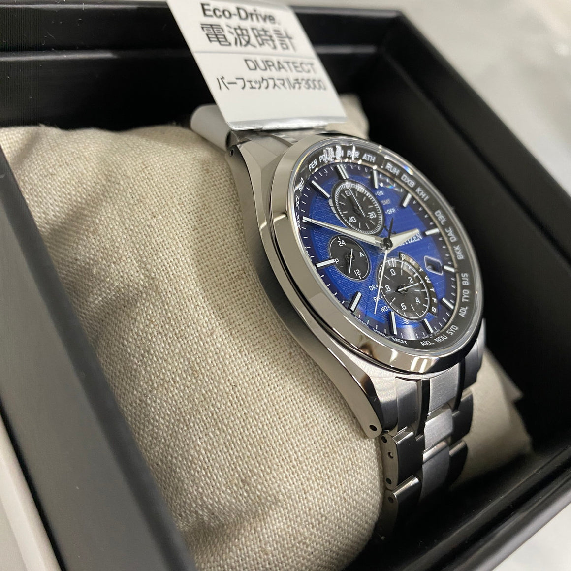 - Titanium whose surface hardness has been increased by Citizen's original technology, world time radio clock, and direct flight that instantly displays the world time with simple operation, and many other functions. Realized a solid design without waste