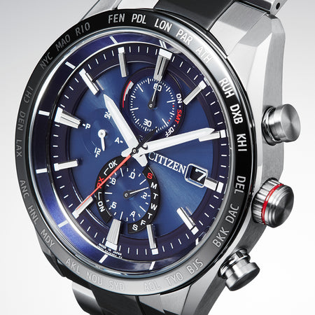 ・Genuine CITIZEN ATTESA ACT Line Eco-Drive Radio Watch Direct Flight Titanium Radio Solar Powered Made in Japan Eco-Drive Radio Men's Wrist watch AT8186-51L CITIZEN ATTESA ACT Line Analog BluexBlack