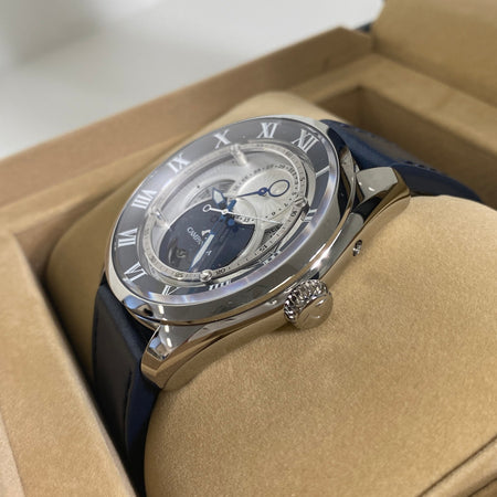 ・The sub-dial at 6 o'clock is carefully painted with black lacquer by hand to express the galaxy flowing through the universe with mother-of-pearl.