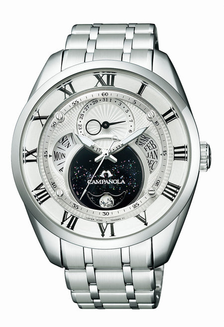 ・Waterproof for everyday life ・Average monthly difference ± 15 seconds ・Drive period: Operates for about 6 months when fully charged ・Date, day of the week, month display ・Moon phase ・Early date correction ・Overcharge protection ・quick start ・made in Japan
