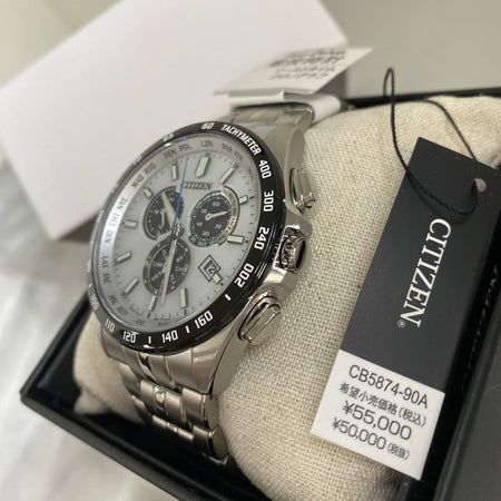 ・Genuine Citizen Collection Eco-Drive Radio Watch Direct Flight Chronograph Radio Solar Powered Men's Wrist watch CB5874-90A CITIZEN COLLECTION Analog Round White
