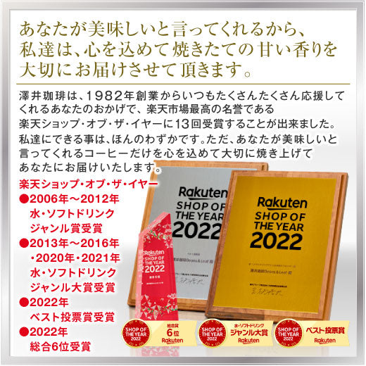 Sawai Coffee products are roasted after receiving your order, so you can enjoy the delicious taste of freshly roasted coffee beans.