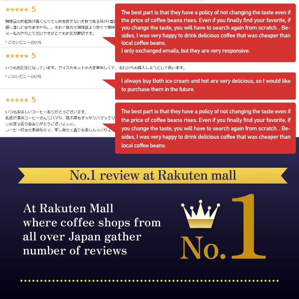 Sawai Coffee products are roasted after receiving your order, so you can enjoy the delicious taste of freshly roasted coffee beans.