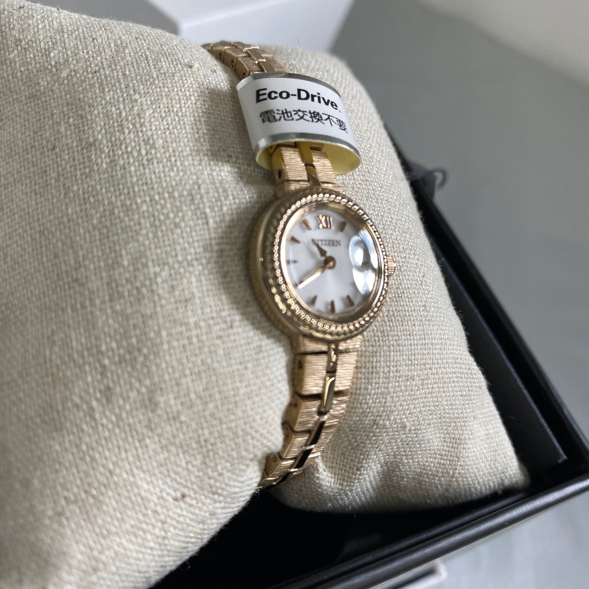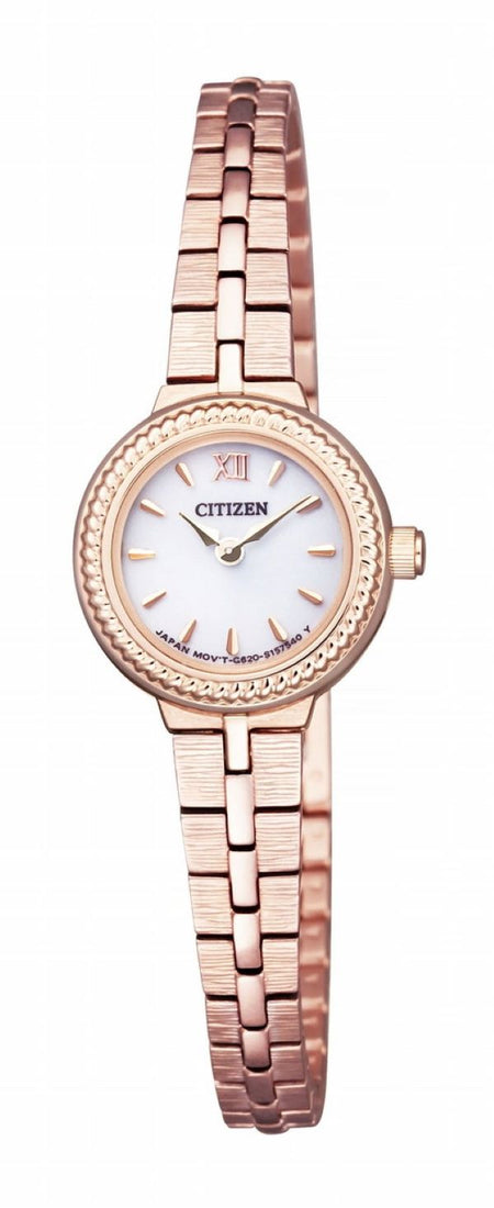 ・Genuine Citizen Key Eco-Drive Round Metal Bracelet 0.7" Solar Powered Ladies Wrist watch EG2984-59A CITIZEN Kii Analog SilverxPink Gold