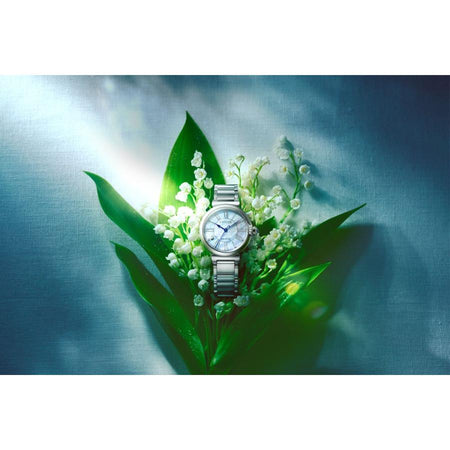 ・The soft curved form reminiscent of lily of the valley and the white pearl dial create a fresh, clean, and dignified elegance.