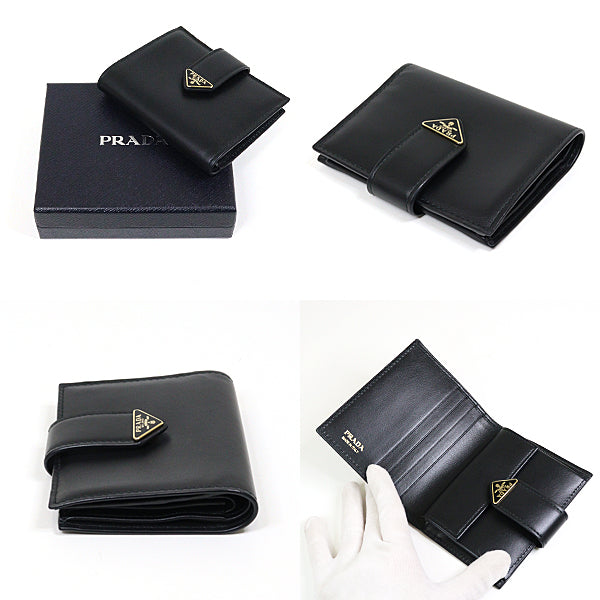 ◆PRADA City Calf Tab 1MV204 wallet Black NERO compact wallet.
