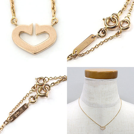 CARTIER Necklace C heart jewelry K18 Yellow Gold K18YG Diamond Women