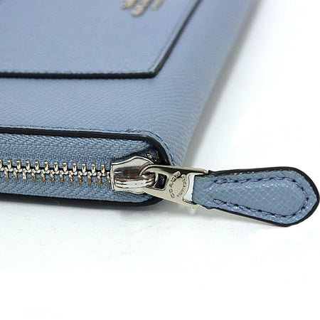 [Notes] ◆Coach Zip Around Long Wallet Leather F54007 Light Blue Silver Hardware.