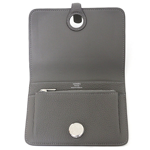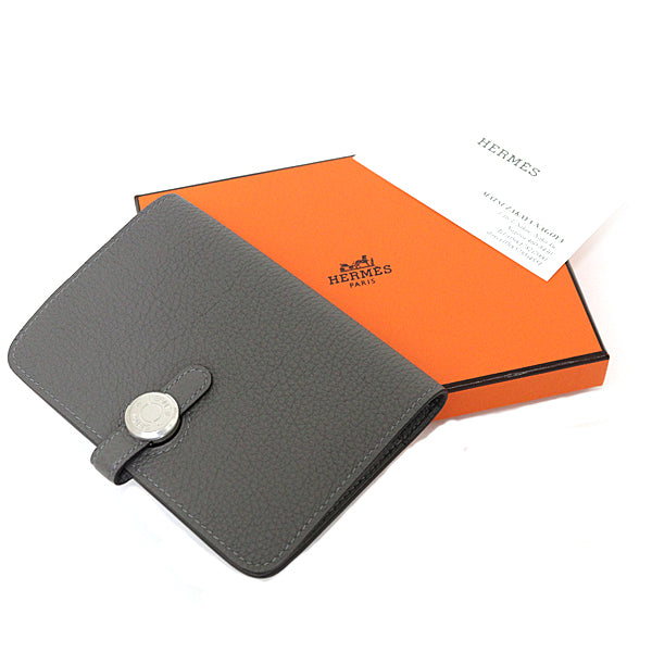 HERMES Dogon Compact wallet Purse Togo Leather Women Grimeyer(Gray)