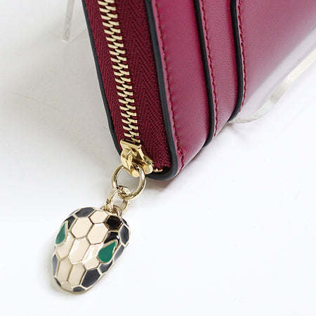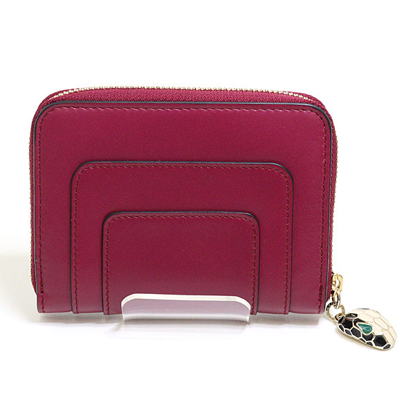 BVLGARI Walle Coin purse Serpenti Card Case Leather Women Winered