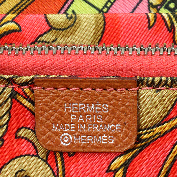 ◆HERMES Azap Compact Silkin Coin Purse coin purse Gold □R engraved.