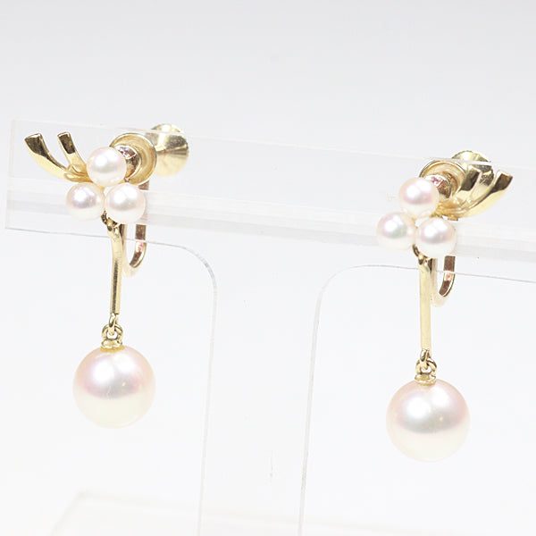 MIKIMOTO Pearl Earring Pierce Akoya Pearl K14 Yellow Gold Women