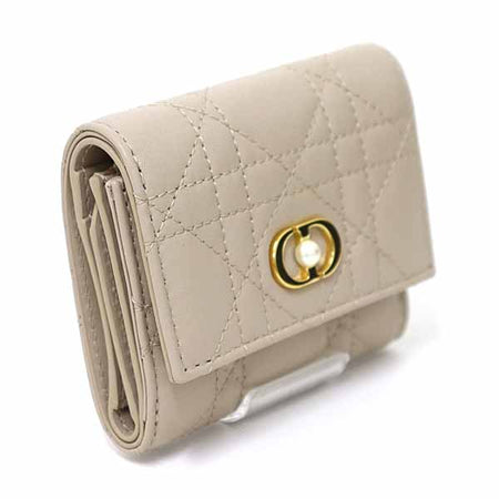 ◆The Dior Caro 'Hibiscus' wallet stands out for its compact and practical design. Made from light ivory Lambskin with 'Cannage' stitching and accented with the CD signature in resin pearls, this sophisticated accessory is perfect for any occasion and keeps all your essentials together.