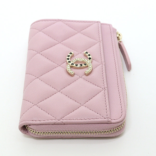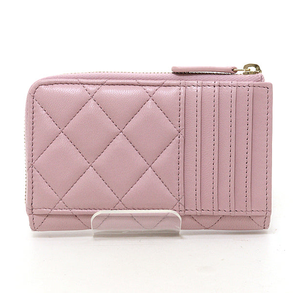 CHANEL Matrasse Zip Card Case Wallet Lambskin Women Pink/GoldHW