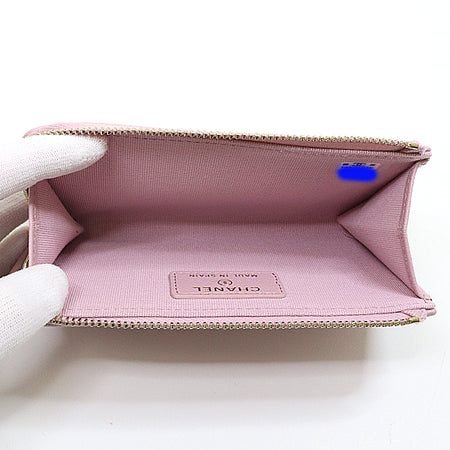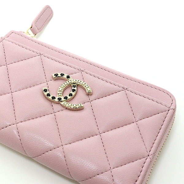 ◆CHANEL Zip Card Case Pink Lambskin Light Gold Hardware.